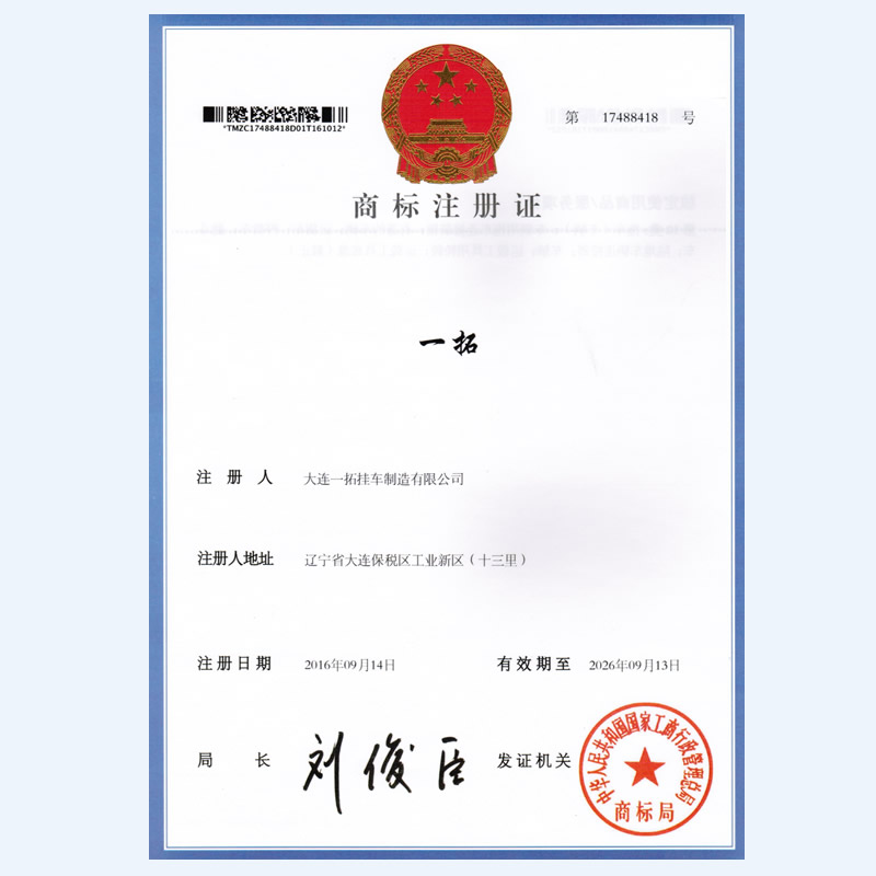 大連一拓掛車制造有限公司,地處遼寧省大連保稅區(qū)十三里工業(yè)新區(qū)興業(yè)街1號,公司占地45000m㎡,總建筑面積24000㎡,現(xiàn)有生產(chǎn)、檢測、研發(fā)設(shè)備100余臺套,擁有自動化程度很高的機器人焊接生產(chǎn)線。大連一拓掛車制造有限公司成立于2013年,是一家具備國家工信部專用車生產(chǎn)資質(zhì)企業(yè),致力于乘用車掛車的設(shè)計和生產(chǎn),主要產(chǎn)品有:平板板式輕型中置軸掛車、欄板式輕型中置軸掛車、廂式輕型中置軸掛車、特種結(jié)構(gòu)式輕型中置軸掛車,并承接各種用途輕型中置軸掛車設(shè)計等業(yè)務(wù)。公司秉承“銳意進取,開拓創(chuàng)新,精益求精,誠信共贏”的運營理念,竭誠為您服務(wù)。